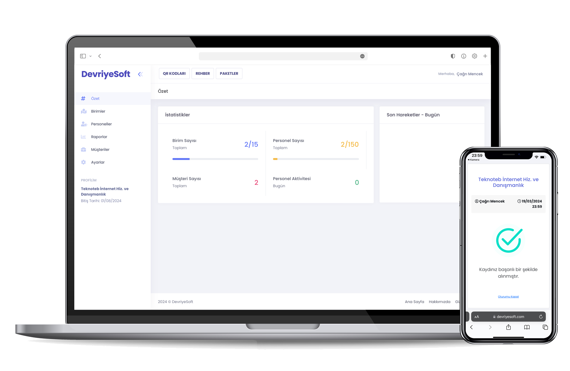 Personelleri ekleyin, tanımlayın, raporları görüntüleyin.